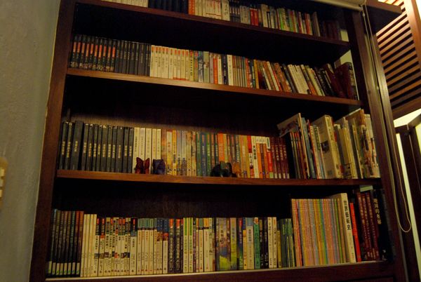 有兩個大大的書架 都擺滿了各式各樣的書和小書 書的範圍很廣 從登山攝影到小說哲理及隨筆 應有盡有