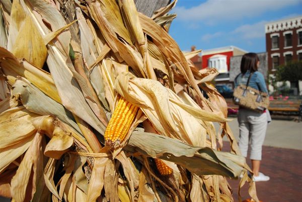 IOWA最多的就是玉米田啦,所以連風車週邊的裝飾也要玉米一下,而且這還是真的玉米不是假得喔,背景市姐姐正在看著對面無人的街道